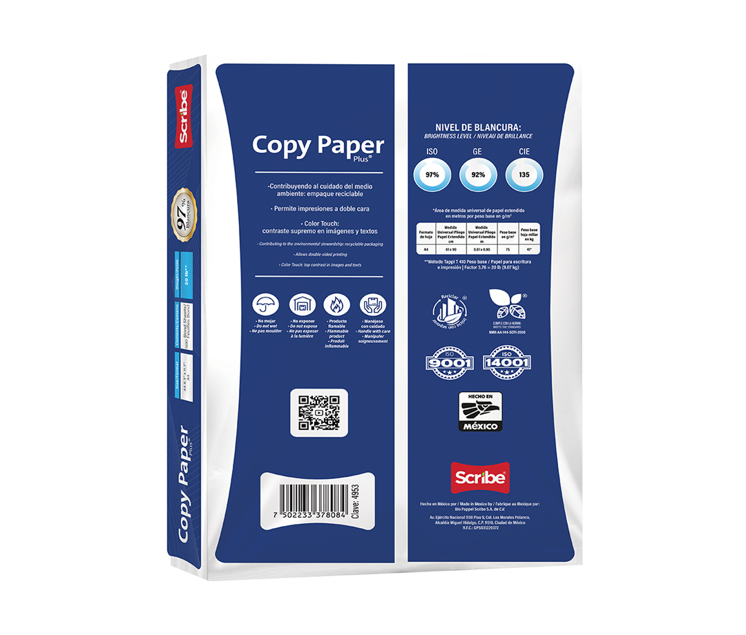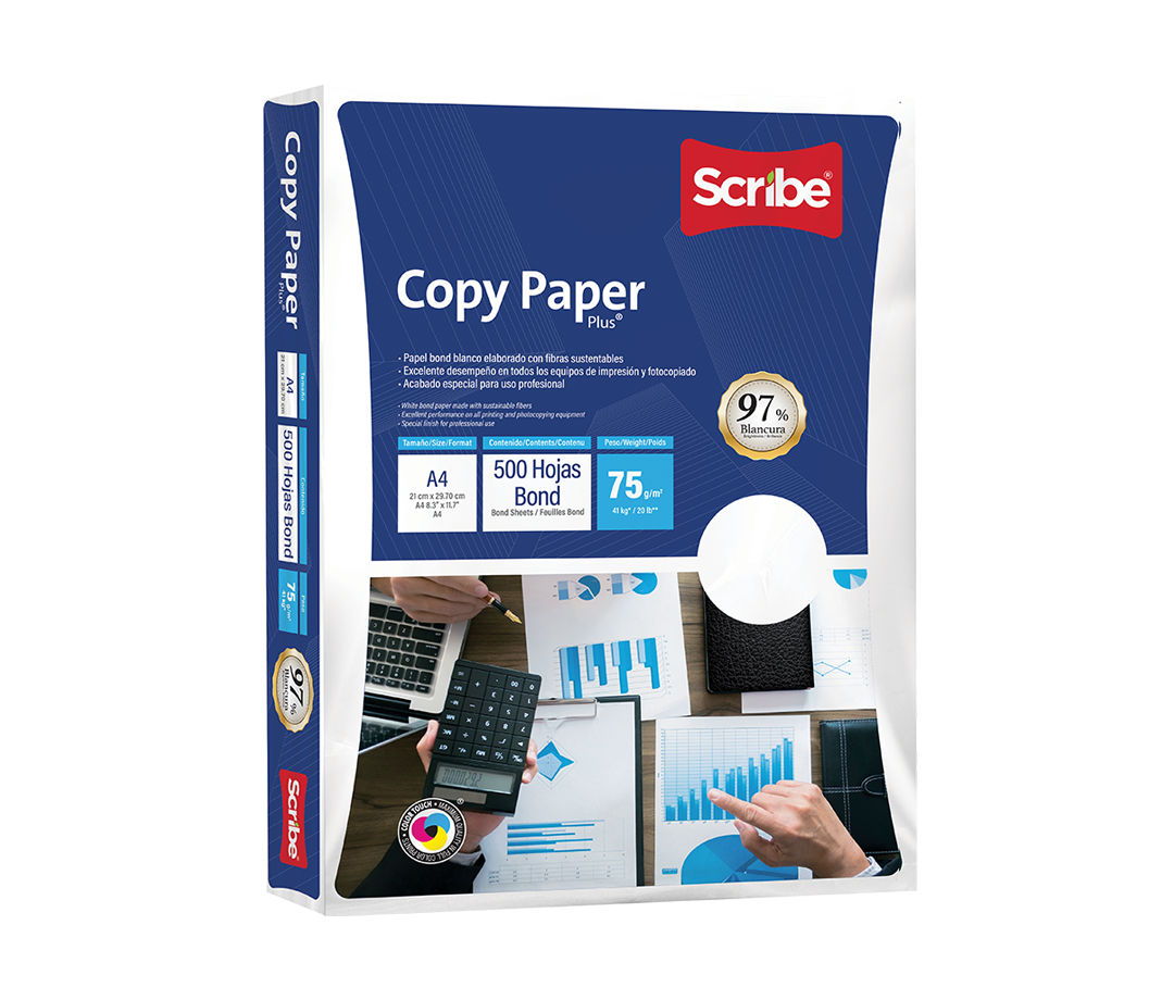 El papel cortado Copy Paper® es otra de nuestras opciones para las impresiones y fotocopias que realices en tu oficina, escuela o negocio, brindándote máxima blancura y alta fidelidad en la reproducción de color.