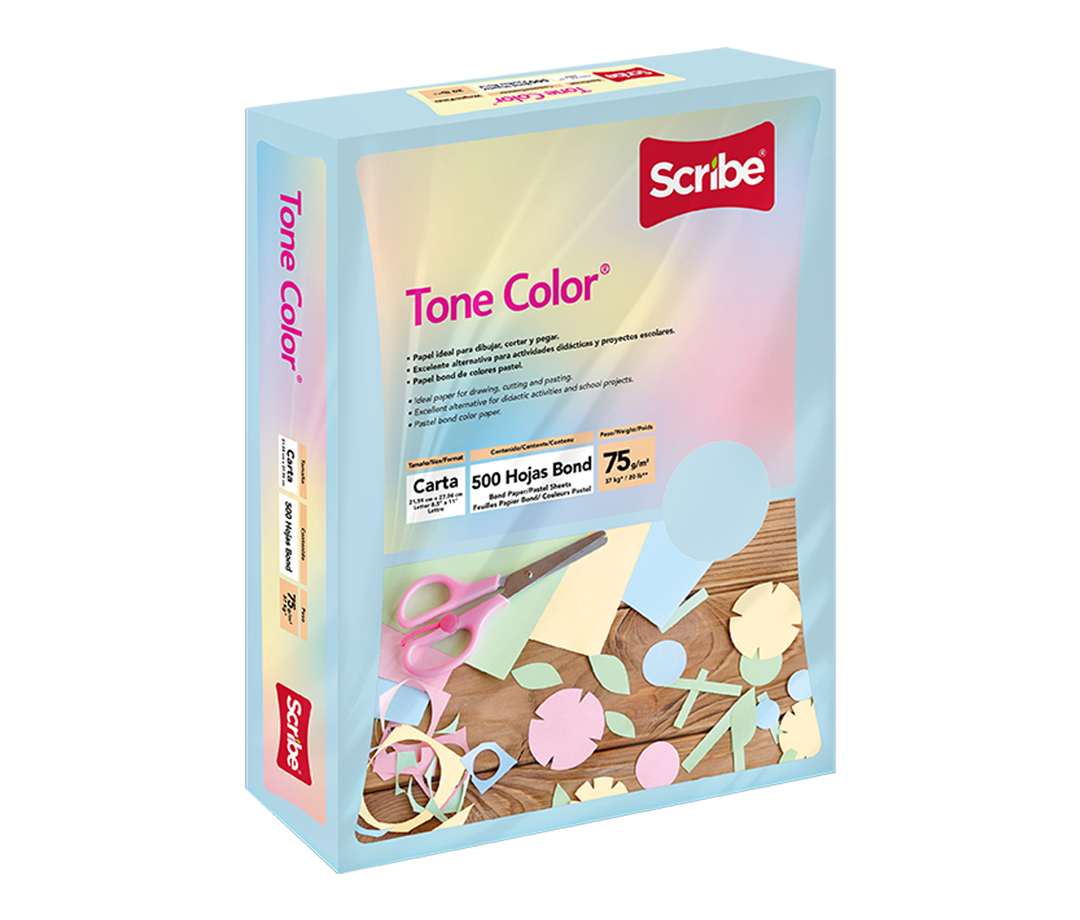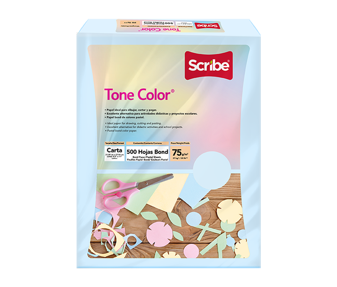 Tone Color® ha sido creado para dibujar, cortar y pegar siendo una excelente alternativa para actividades didácticas y proyectos escolares. Disponible en 4 colores pastel.