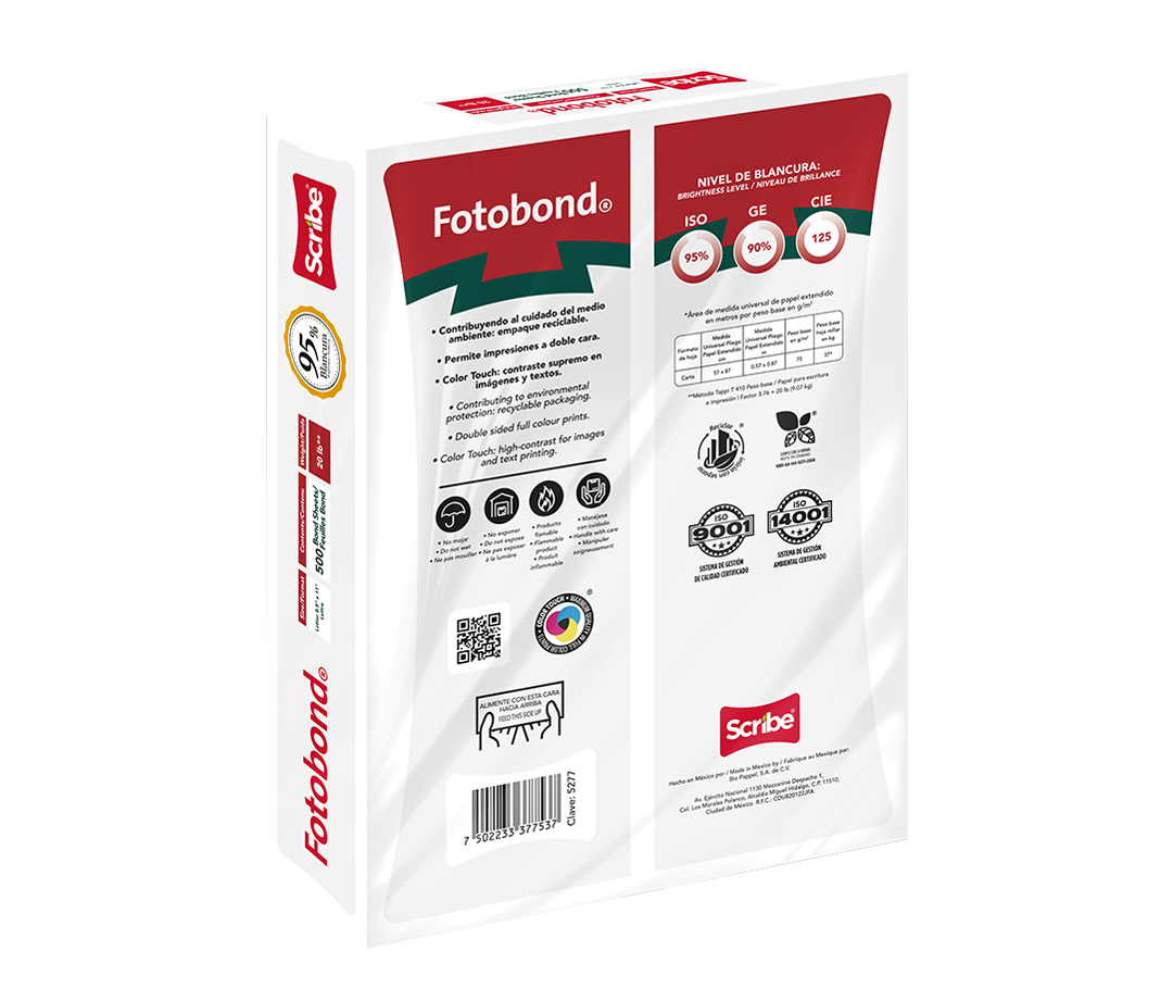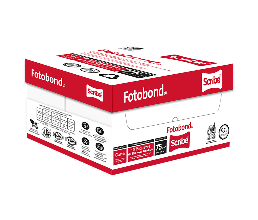 Fotobond® es nuestro papel bond blanco, elaborado con fibras sustentables con la precisión necesaria para un mejor rendimiento en fotocopiado e impresión. Cuenta con niveles balanceados de humedad, formación y suavidad para responder a la combinaicón de calor y presión en los diferentes dispositivos de impresión.