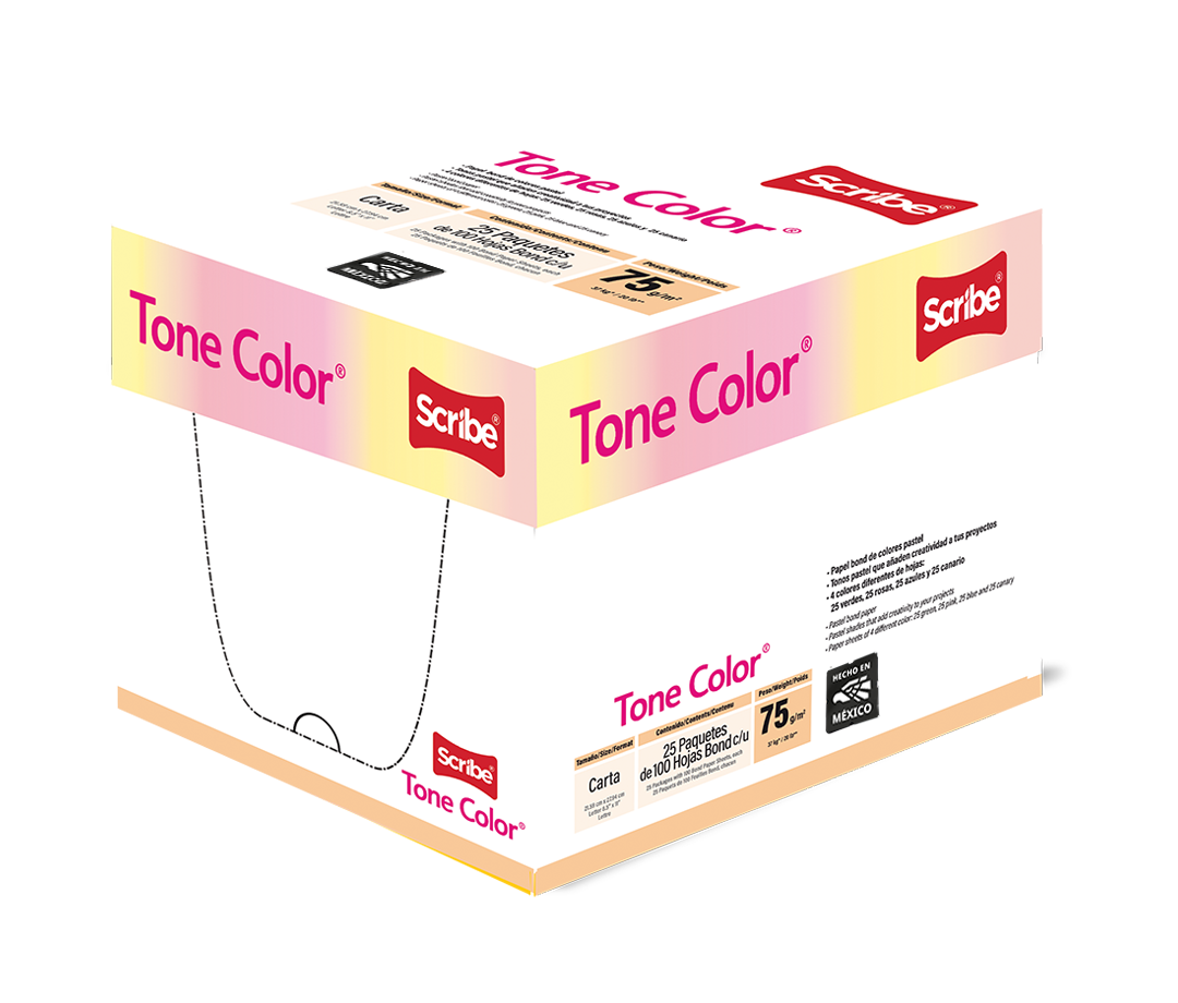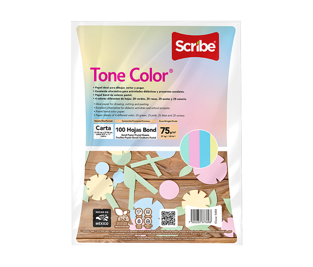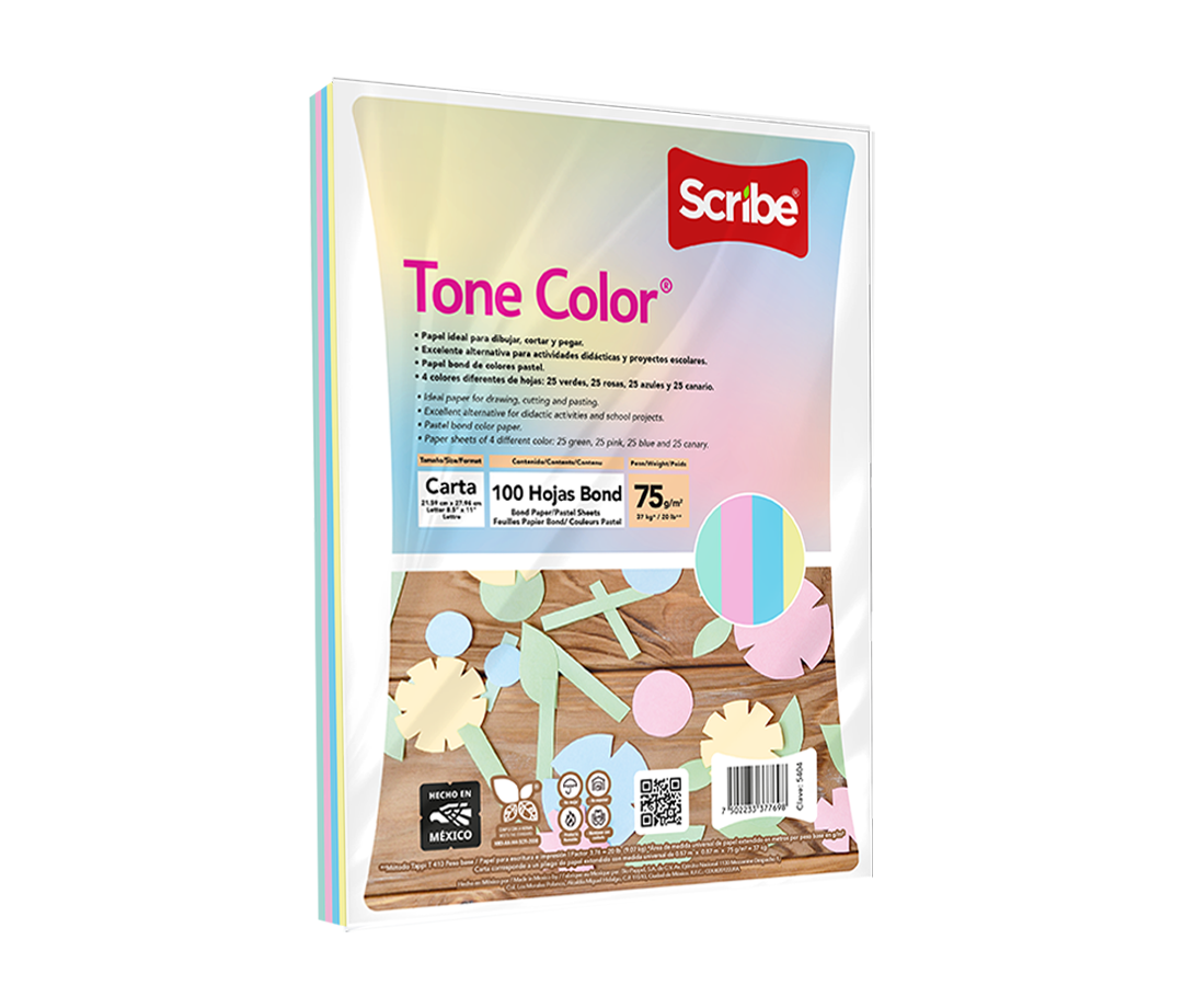 Tone Color® ha sido creado para dibujar, cortar y pegar siendo una excelente alternativa para actividades didácticas y proyectos escolares. Disponible en 4 colores pastel.