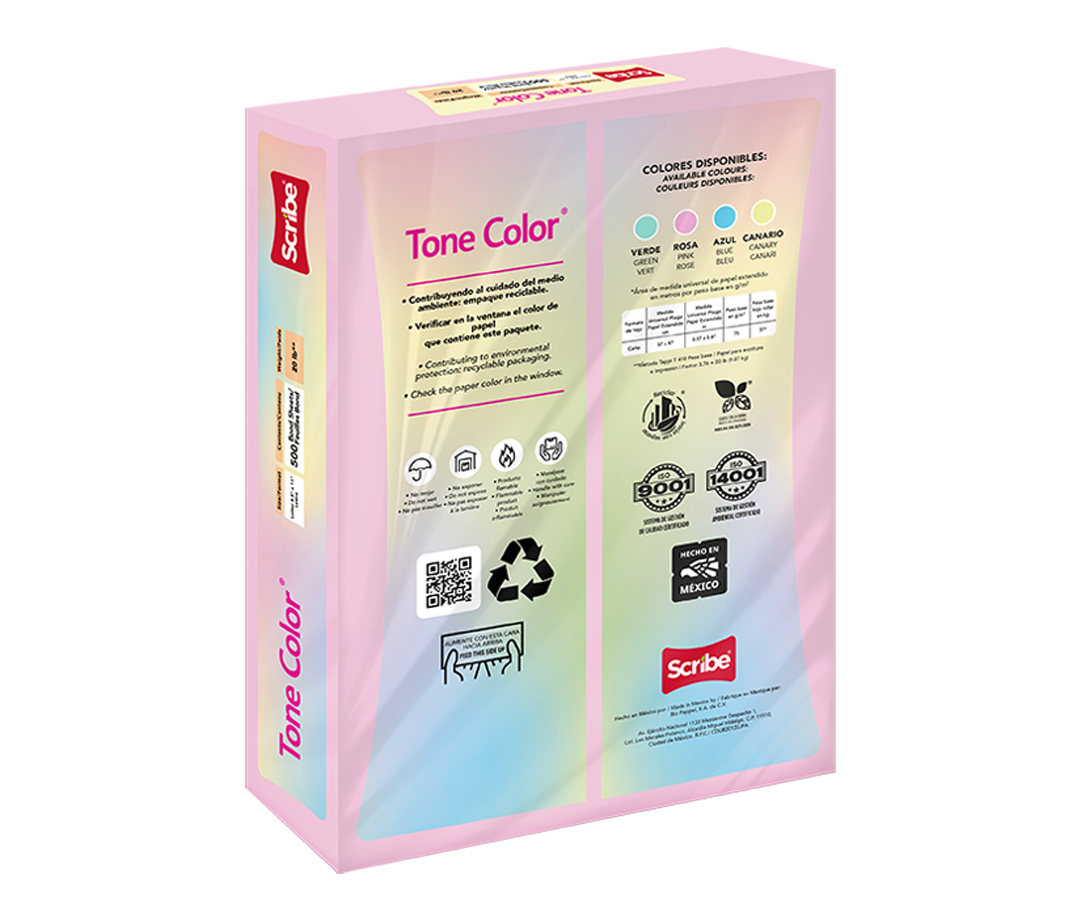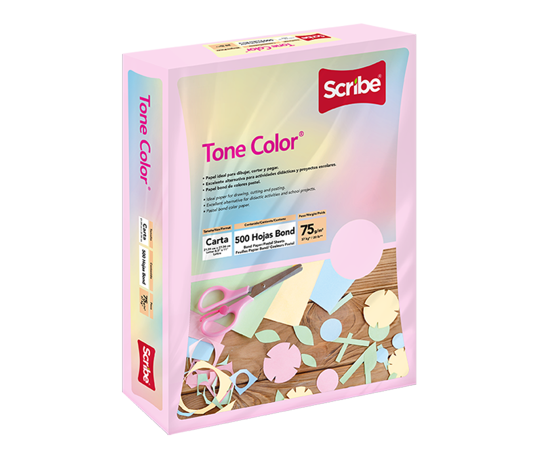 Tone Color® ha sido creado para dibujar, cortar y pegar siendo una excelente alternativa para actividades didácticas y proyectos escolares. Disponible en 4 colores pastel.