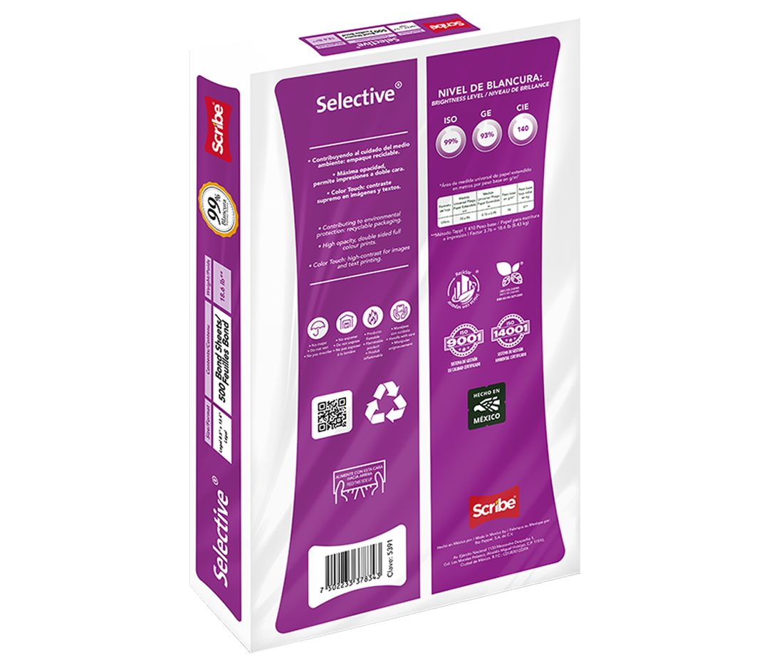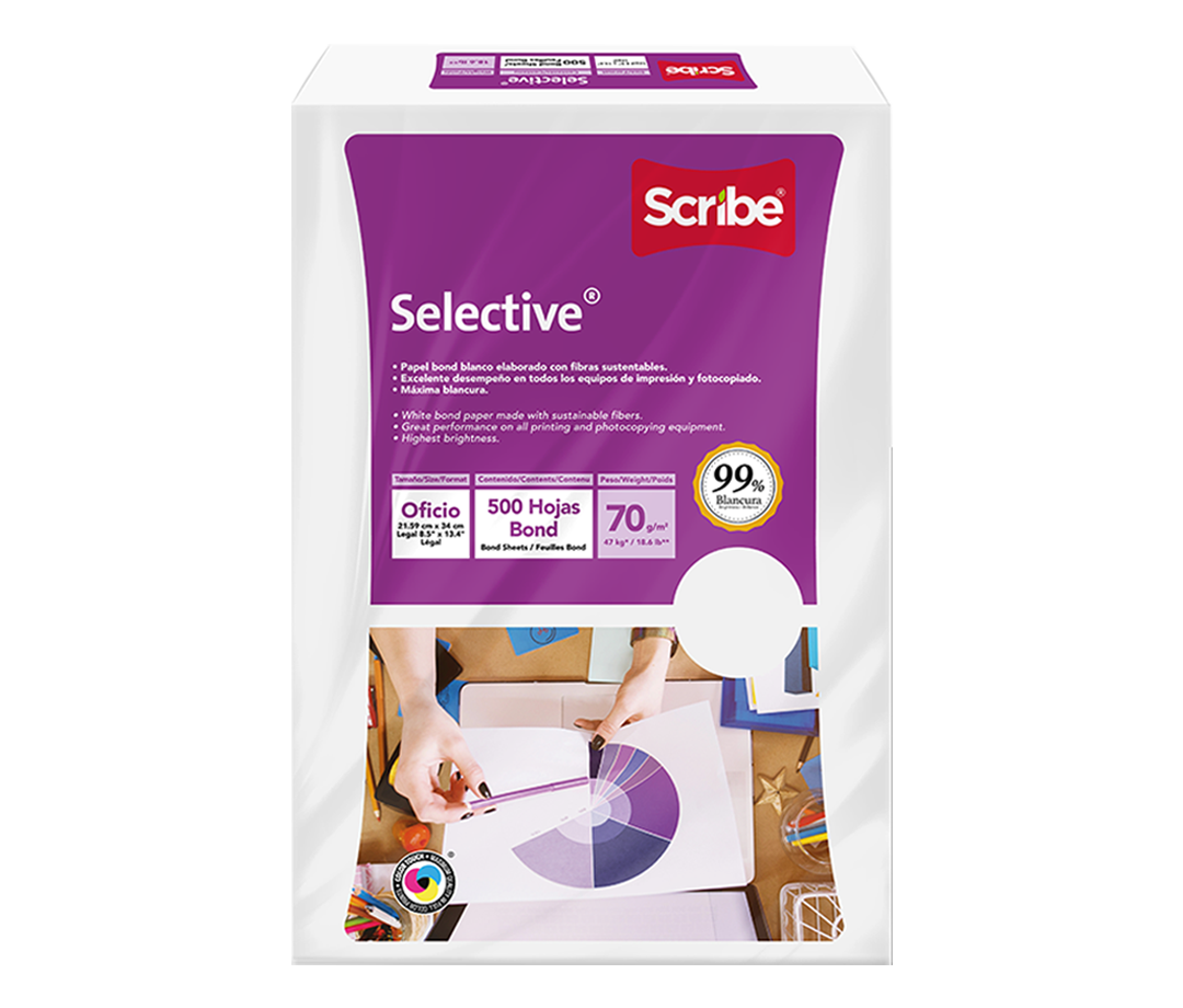 Nuestro papel cortado Selective® es ideal para impresiones y fotocopias en tu oficina, escuela o negocio, brindándote máxima blancura y alta fidelidad en la reproducción de color.