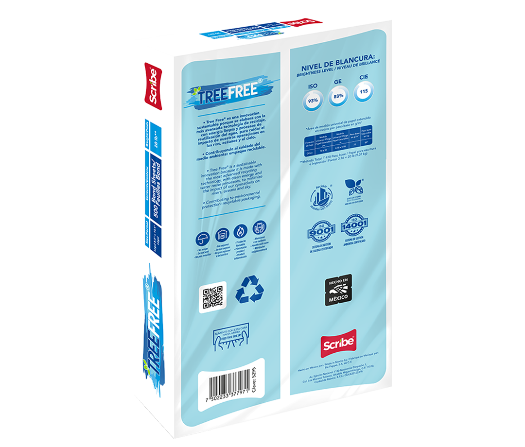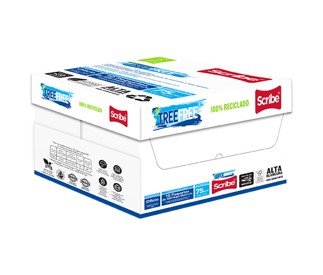 Tree Free® es nuestro papel bond de alta blancura y 100% reciclado, integrado al programa FSC® “Bosques para todos, para siempre”.